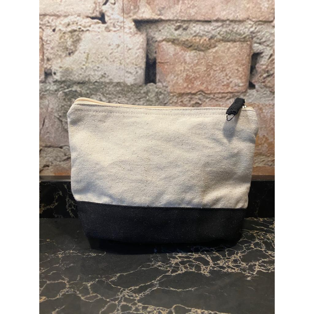 Deze leuke toilettas van ongebleekt katoen met zwarte onderkant, is van stevige kwaliteit, en past perfect in je koffer op vakantie, of in een rugzak als je lichter bepakt van huis gaat.