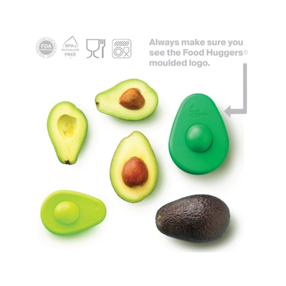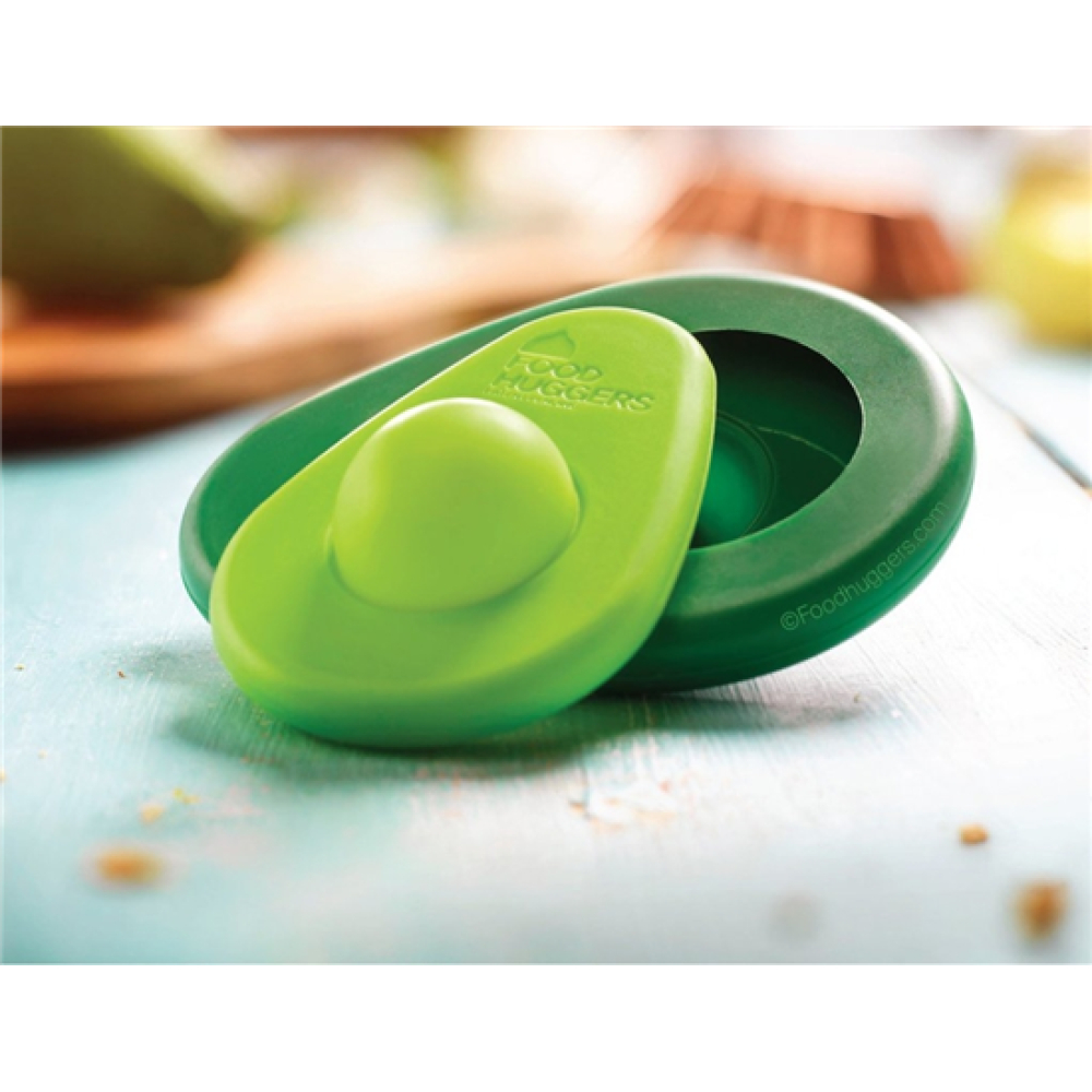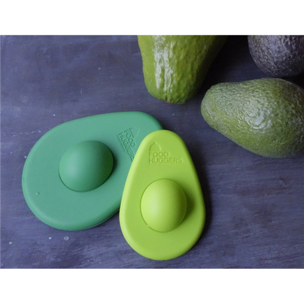 Foodhuggers zijn zo wie zo dé oplossing voor groenten die overbijven. In plaats van bakjes in de koelkast of een stuk slecht plakkend folie, kan je de foodhuggers op de open kant van het stuk groente of fruit plaatsen, zodat ze hun kwaliteit behouden. Deze speciale uitvoering is gemaakt voor avocado's; hij heeft de vorm van een avocado en zelfs een speciale bobbel voor de pit, die óf in het gat kan worden geduwt óf over de pit heen valt.