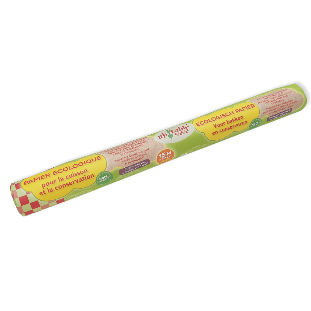 Bakpapier biedt veel mogelijkheden ! Dit bruin keukenpapier met vlak en glad oppervlak is voornamelijk gemaakt voor in de oven om te bakken (tot 220°C) en in de micro-wave oven. Dankzij zijn microporeuze structuur ademt het, absorbeert het condensatie, beschermt het aromas, blokkeert het vetten en is het volledig neutraal wat betreft smaken en geuren van voedsel.In de ijskast kan dit papier evenzeer gebruikt worden om voedsel te bewaren (charcuterie, kaas, etc). Zo kunt u uitdroging van uw voeding en verspreiding van geurtjes voorkomen. De vele voordelen zorgen voor veelzijdige , gevarieerde gebruiksmogelijkheden... Dit ecologisch papier zal u simpelweg helpen in de keuken en bij het bewaren van uw voeding!