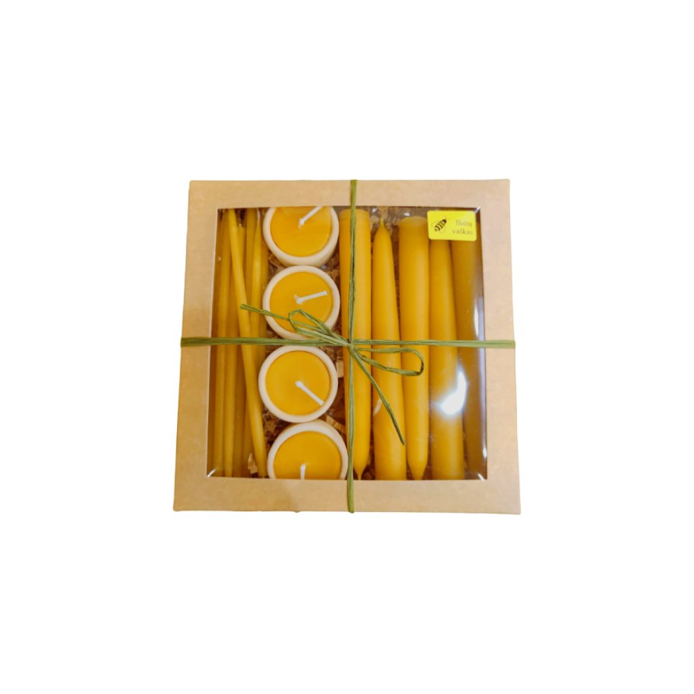 Deze geschenkset bestaat uit verschillende kaarsen gemaakt van 100% natuurlijke bijenwas. Kaarsen van bijenwas zijn een milieuvriendelijk en gezonde keuze, ze produceren vrijwel geen rook en bevatten geen paraffine.
