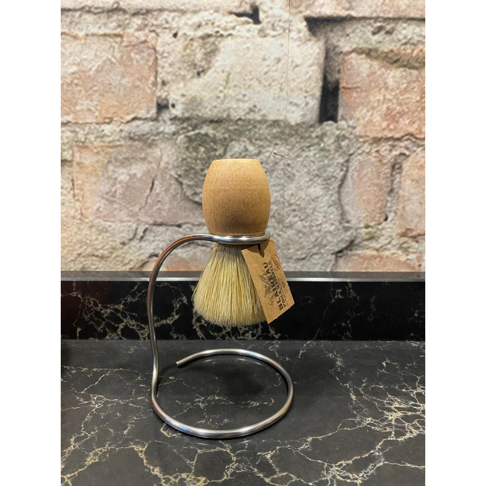 Scheerkwast met beukenhouten greep en haar van wild zwijn. Deze scheerkwast biedt een stevige grip en wordt gewaardeerd om zijn elegantie en ergonomische lijnen. De kwast absorbeert water en zeep als geen andere borstel, reinigt, masseert kin en wangen, en produceert met gemak een perfect, rijk schuim dat de stoppels prepareert voor het scheermes. Zorgvuldig vervaardigd door ambachtslieden.