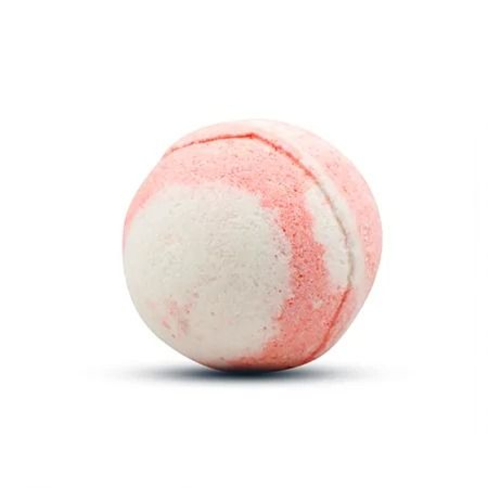 Een bruisbal van 120 gram en een diameter van 6,5 cm met een heerlijke aardbei geur. De bruisbal bestaat uit de kleuren wit en rood.