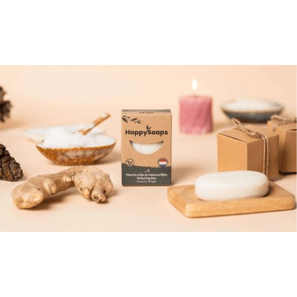 Het is een plasticvrije vervanger voor scheerschuim of scheergel! De Shaving Bar van HappySoaps is een product dat wij samen met een aantal loyale klanten hebben bedacht. Eigenlijk lijkt het op een bekend product; scheerzeep. Maar wat is dan het verschil? Simpel: onze Shaving Bar bevat helemaal geen zeep. Zeep is een mooi en natuurlijk ingrediënt. Het heeft echter twee problemen: