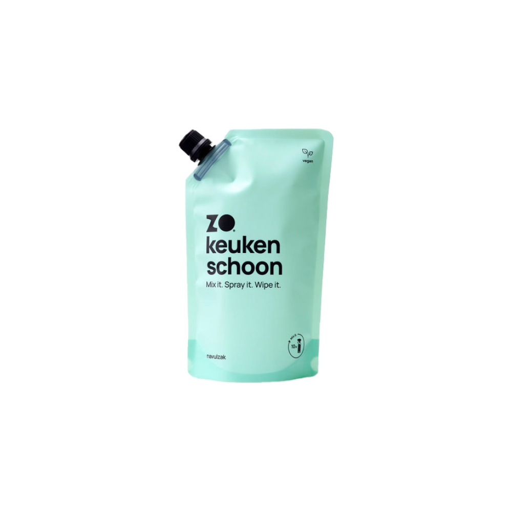 Met de navulzak vul je 10 sprayers. Water voeg je zelf toe. Met een sprayer kun je 400 keer sprayen. ZO keuken schoon heeft het vegan keurmerk en wordt in Nederland geproduceerd.