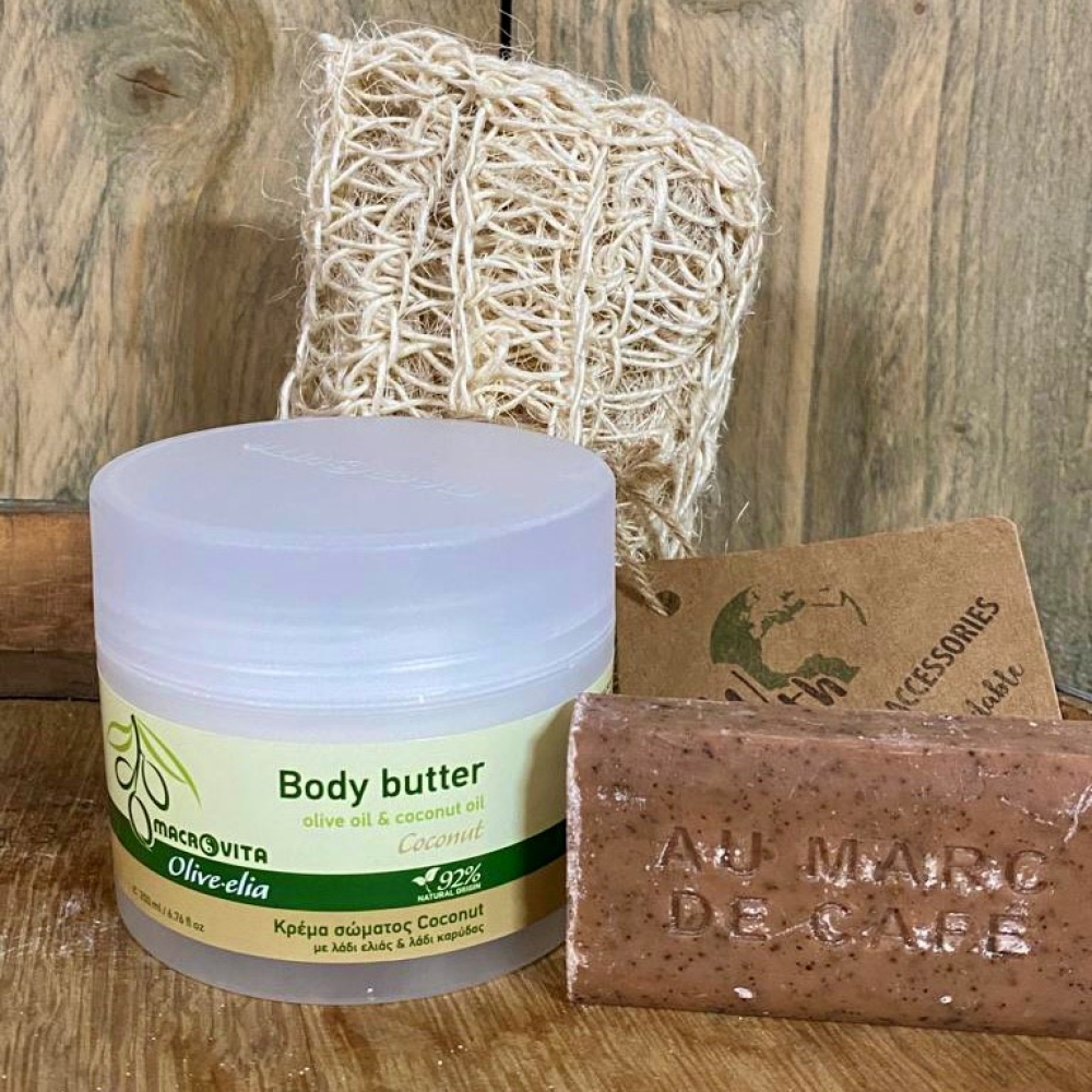 Een natuurlijke body butter met Kokosolie is de perfécte huidverbeteraar van nu. De verzadigde vetten in de natuurlijke body butter kokosolie vormen niet alleen voor een stralende, zijdezachte huid; het zorgt er ook voor dat de vochtbalans behouden blijft. Kokosolie bevat antioxidanten die de huid zichtbaar gehydrateerd houdt en vitaminen die de huidkwaliteit aanzienlijk verbeteren. Door dagelijks de body butter kokosolie te gebruiken houd je de huid in optimale conditie. Elke dag een vleugje zomer in deze intens frisse en mild gearomatiseerde body butter met natuurlijke kokosolie.