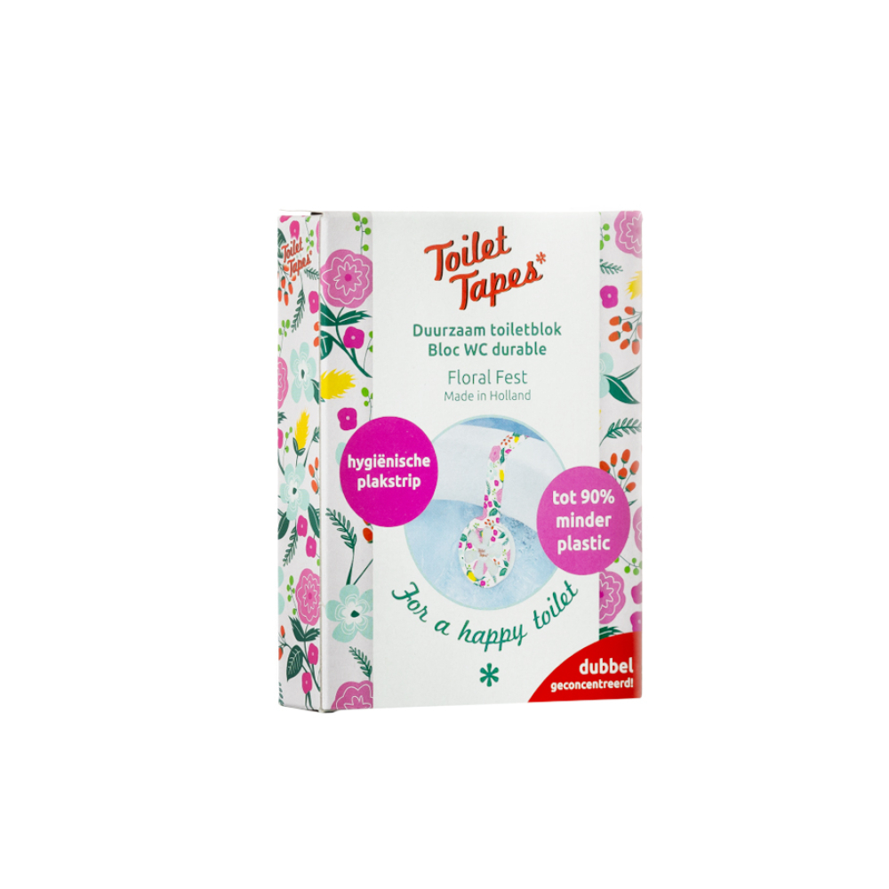Toilet Tapes gooide het originele wc-blokje volledig op de schop om een milieuvriendelijke variant te ontwikkelen. En zo ontstond het unieke concept van Toilet Tapes. Toilet Tapes zijn toiletblokjes die aan een tape worden opgehangen in de toilet. De tape heeft een vrolijk design en het blokje geeft een heerlijke natuurlijke, frisse en permanente geur. Voor deze toilet tape wordt tot 90% minder plastic en biologisch afbreekbare zeep gebruikt dan bij wc-blokjes! Verkrijgbaar in 8 aangename natuurlijke, frisse en permanente geuren.