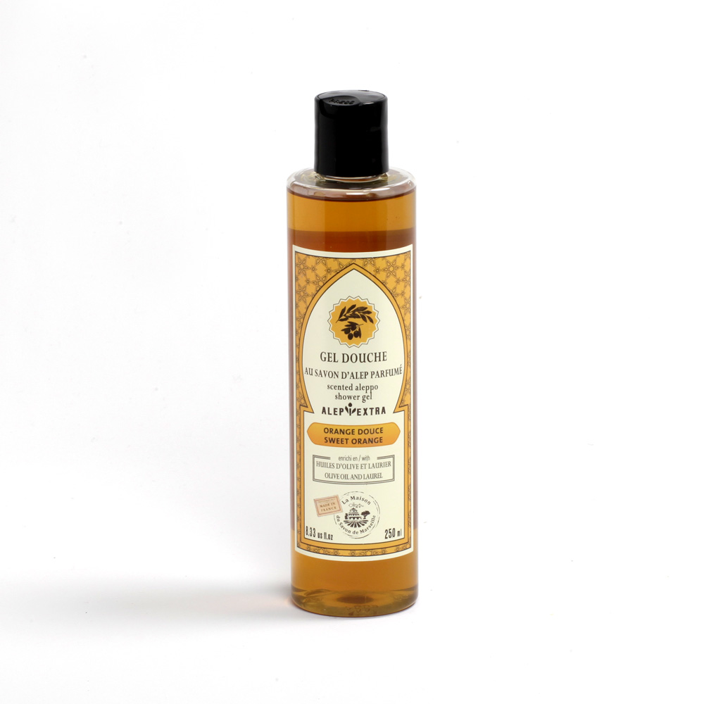 Deze geurige vloeibare Aleppo-douchegel is vernieuwd met etherische oliën van zoete sinaasappel. Deze zeep voedt, hydrateert en beschermt de huid door de voordelen van laurierolie en olijfolie te combineren